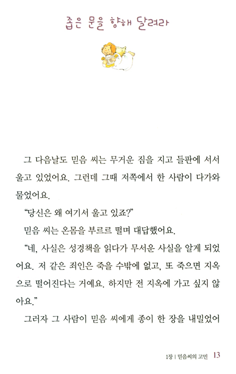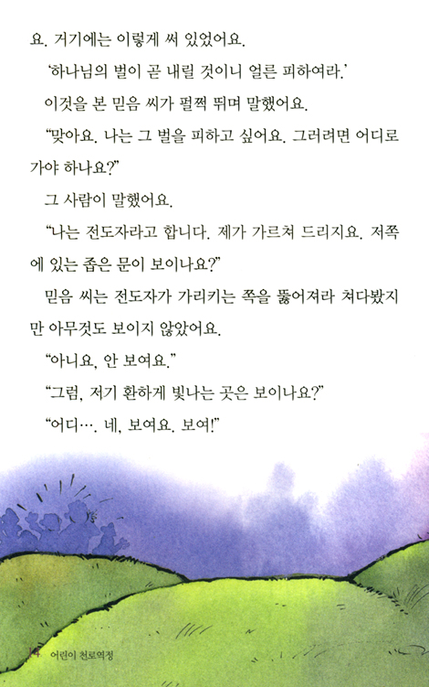 천로역정은 하늘나라로 가기까지의 과정을 담고 있어요. 그리고 이것은 우리가 살아가면서 겪게 될 모든 과정이기도 하지요.