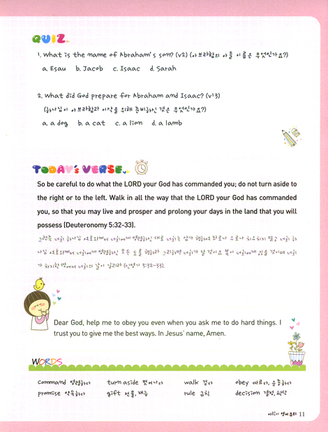어린이의 눈높이에 맞춘 묵상글과 기도문, 흥미진진한 퀴즈가 가득!