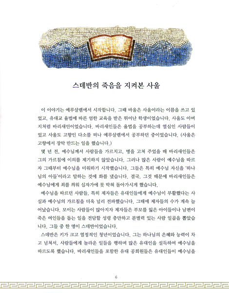 바울은 초대 교회의 가장 위대한 사도였습니다. 바울은 그 시대의 특권층인 로마 시민권자로서 편안한 삶을 누리기보다는 로마 제국을 돌아다니며 유대인과 이방인들에게 예수님의 부활을 전했습니다. 험난했던 전도 여행을 하면서도 바울은 초대 교회 그리스도인들에게 많은 편지를 보냈습니다. 바울은 초대 교회 그리스도인들을 하나님께로 이끌었으며, 그들을 책임감 있게 끝까지 사랑했습니다. 이 책은 초대교회를 배경으로 회심한 바울의 생애를 감동있게 전하고 있습니다.