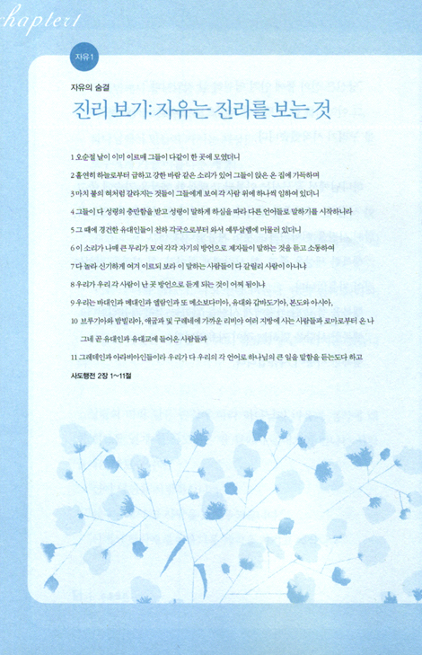 이 책에는 하나님의 책인 성경을 통하여 진정한 자유가 무엇이며, 그것을 마음껏 누리기 위해 어떤 울타리와 어떤 대가지불이 필요한지에 대한 설명이 자세히 들어 있습니다.