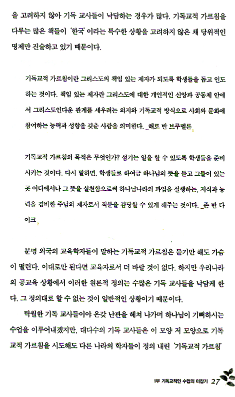 기독교적 가르침에 대한 고민을 서구 학자들의 언어로 이해하고자 했는데, 이제 우리 교사의 언어로 해석하고 공감할 수 있는 이 분야의 책이 나와 기쁘고 감사하다.
