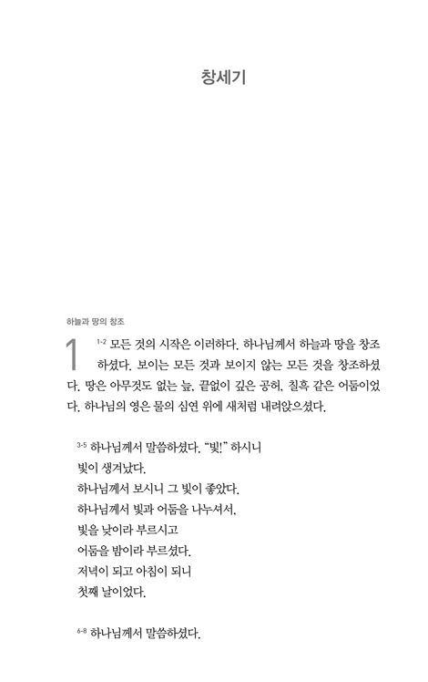 “말씀이 육신이 되어…….” 육신이 된 말씀은 역사의 분기점마다 새 세상을 창조하는 영감과 통찰, 그리고 힘의 원천이었다. 위대한 개혁의 시대에는 일상의 언어, 보통 사람의 말로 생생하게 살아 펄떡이는 말씀이 있었다. 위클리프의 성경이, 루터의 성경이, 암울했던 일제 강점기에는 개역성경이, 그리고 이제 우리에게는 『메시지』가 주어졌다. 주님께서는 우리 시대 또 어떤 역사를 시작하실 것인가?