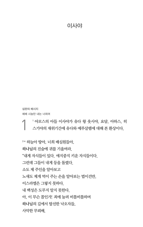 성경은 자구(字句)를 따져 가며 세심히 읽어야 하는 진리의 말씀입니다. 그뿐만 아니라, 성경은 하나님께서 우리를 인격적 존재로 대하시며 건네시는 생생한 일상의 말씀이기도 합니다. 그 살아 있는 말씀으로 하나님의 마음을 느끼며 신앙의 내용도 바로 이해하게 될 때, 우리는 더욱 성숙한 믿음으로 나아가게 될 것입니다. 그 길로 나아가는 데 이 책 『메시지』는 크나큰 유익을 줄 것이라 기대합니다.