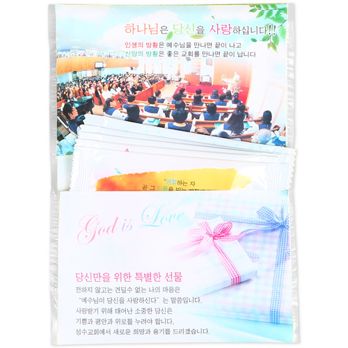 1. 교회 주변을 노방전도 할 때 티슈를 나누어 주면서 전도용으로 사용합니다.