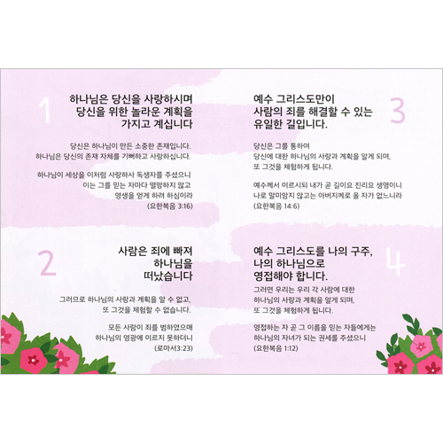 - 사영리의 기본을 글과 그림으로 이해하기 쉽게 설명한 전도지입니다.