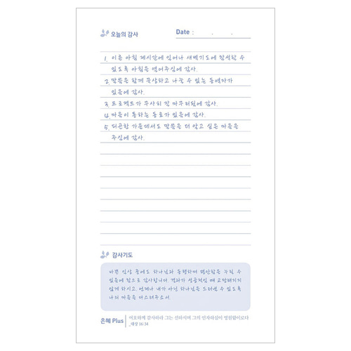 3. 각 페이지마다 감사성구 수록: 은혜를 더하는 성경말씀으로 깊은 묵상을 돕는다.