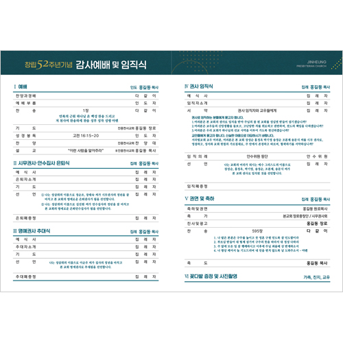 [독판인쇄물] 임직순서지/봉헌예배 순서지 (500장 기준)