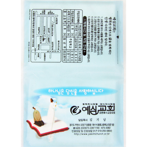 ② 비닐지갑티슈 2면에 교회에서 원하는 내용을 인쇄해 드립니다.