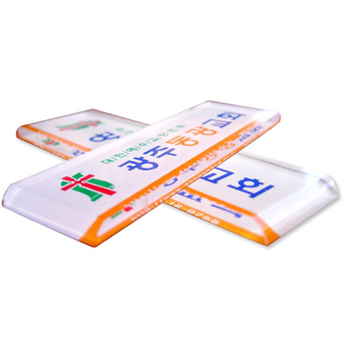 투명 아크릴에 실크스크린으로 배면 인쇄하여