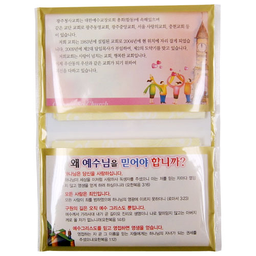 1. 교회 주변을 노방전도 할 때 티슈를 나누어 주면서 전도용으로 사용합니다.